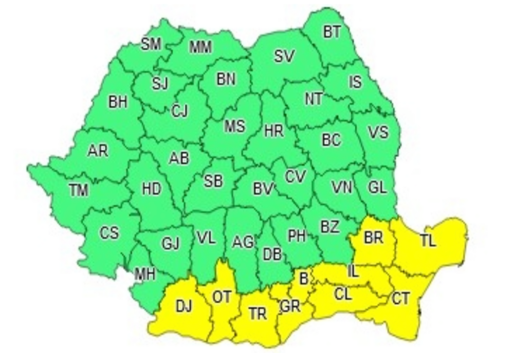 Administrația Națională de Meteorologie a actualizat atenționarea meteo cod galben de caniculă. Potrivit meteorologilor, zona de sud și sud-est a țării va fi afectată de un val de căldură insuportabilă.