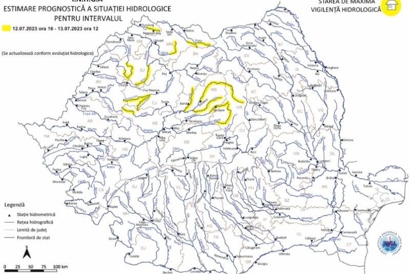 Atenţionarea Hidrologică vizează în principal fenomenele de scurgeri importante pe versanţi, torenţi, pâraie, viituri rapide pe râurile mici cu posibile efecte de inundaţii locale, care se pot produce cu probabilitate şi intensitate mai mare pe unele râuri din judeţele: Maramureş, Sălaj şi Cluj.