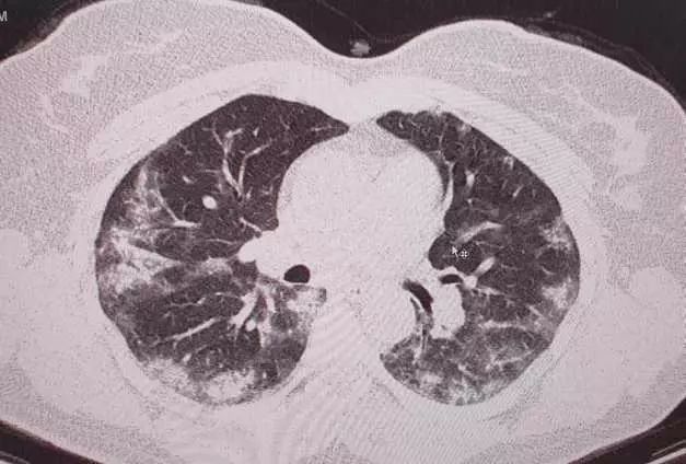 "Opacităţi "în sticla mată" dispuse la periferia plămânilor...foarte concludente...", a scris dr. Alexandru Andriţoiu, în dreptul imaginii.