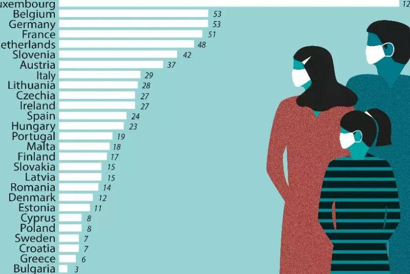 Luxemburg, unde există o politică guvernamentală de distribuire la nivel naţional de măşti, are de departe cele mai mari importuri per capita de măşti sanitare din UE, cu o valoare a importurilor de 121 euro pe cap de locuitor. Urmează, la distanţă, Belgia, Germania şi Franţa care sunt singurele ţări unde importurile per capita au fost mai mari de 50 de euro.