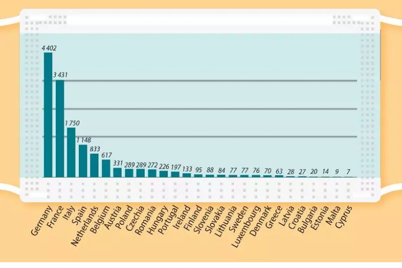 China a fost principalul partener al UE în importurile de măşti faciale. Peste 92% dintre măştile importate de blocul comunitar în primul semestru din 2020 au fost din China. Importul de măști a crescut cu 30 de puncte procentuale comparativ cu situaţia din primul semestru din 2019, mai arată datele Eurostat.